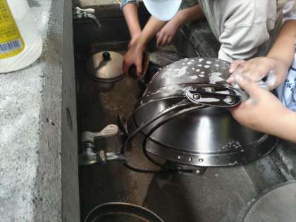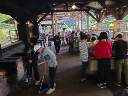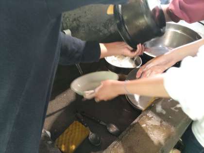 おいしくいただいた後は、片付けです。協力して片づけをしています。