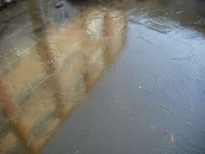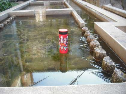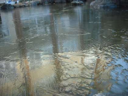 水の上に水筒が乗っていました!朝の寒さを感じながらも,冬にしか見れない光景でした♪