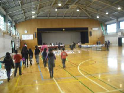 今日は,様々な時間帯と学年で図工展の準備がありました。自分が作った工作を体育館に運んでいました。他のクラスや他の学年の図工を見ることは,滅多にないので子ども達は興味津々でした☆