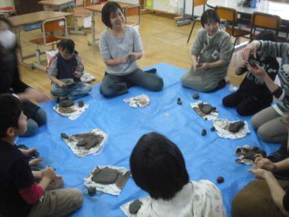 粘土をつまんだり,転がしたりと授業を楽しんでいました♪