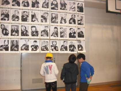 体育館に入ると,「すごい!」と言いながら色々な学年の作品を鑑賞しました。