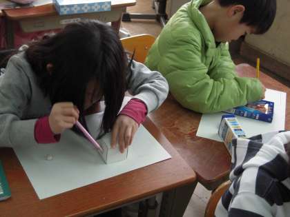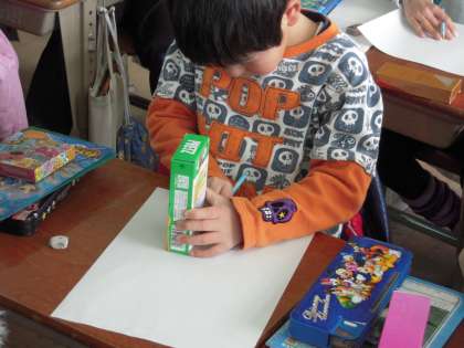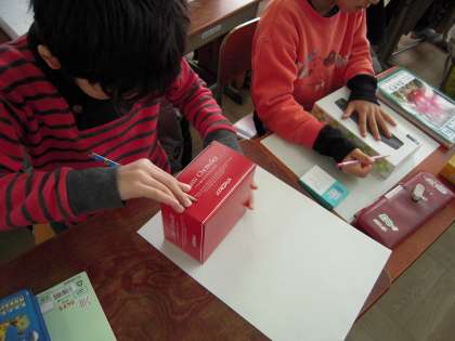 はこには,同じ形の「面」がいくつずつあるのか,紙に写し取って調べました。