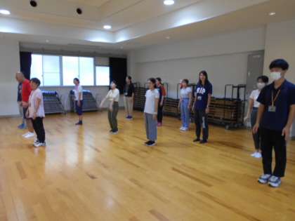 運動会に向けて子どもたちは毎日、一生懸命練習に励んでいます。先生方も全校ダンスで一緒に踊れるように、鏡に映った自分の姿を見ながら、レッスン!レッスン!