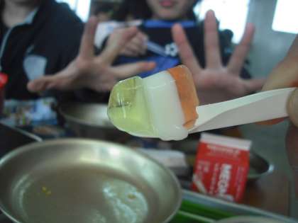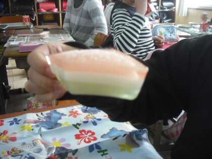 今日は,1年に1回の三食ゼリーが給食にでました!みんな嬉しそうに食べていましたよ☆「どの色から食べようか」,「三色同時にたべようか」など悩みながら口に運んでいる様子は,純粋そのものでした♪