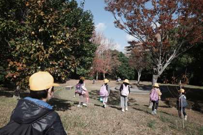 洛西バスターミナルから歩いて、境谷公園へ行き公園内を散策しました。木々が紅葉していてたくさんの落ち葉が見られました。秋を体いっぱいに感じることができました。
