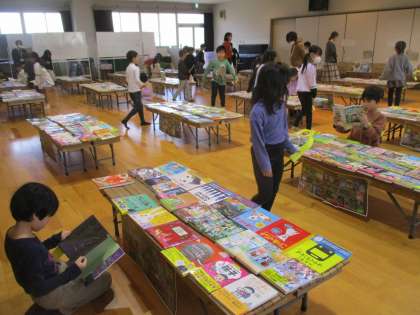 子どもたちはたくさん用意された真新しい本を見て目を輝かせ、夢中になって読んでいました。