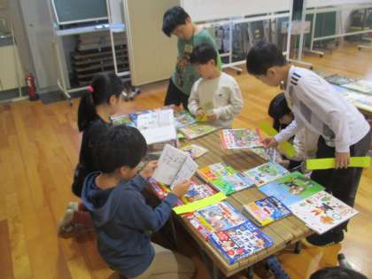 図書室に置きたい本を自分たちで選ぶ選書会をしました。