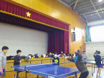 前半は卓球のお別れ試合。6年生は卓球台に分かれて、
