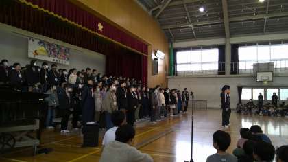 6年生の迫力ある歌声が体育館に響きわたりました。