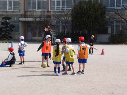 1年生は、ボールけりゲームの学習をしています。