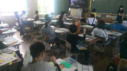 身近に聞こえる音を形に表し、さらに絵で表現しました。