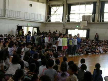 4年生からは学校紹介クイズをしました。各クラス1年生が