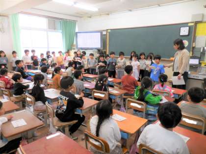 自己紹介の後は、2年生といっしょに文字当てクイズをしました。