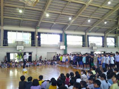 6年生は「6レンジャー」が登場し、学校生活の中で困っているお友達に解決方法を教えてくれました。1年生も大盛り上がり!その後に「ビリーブ」を歌ってくれました。2部合唱で、体育館に美しい歌声が響いていました。