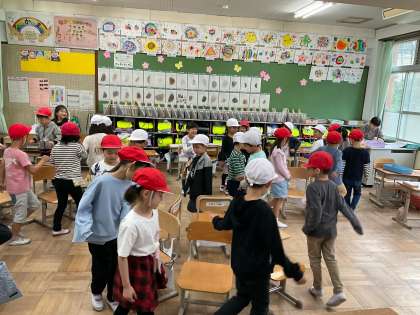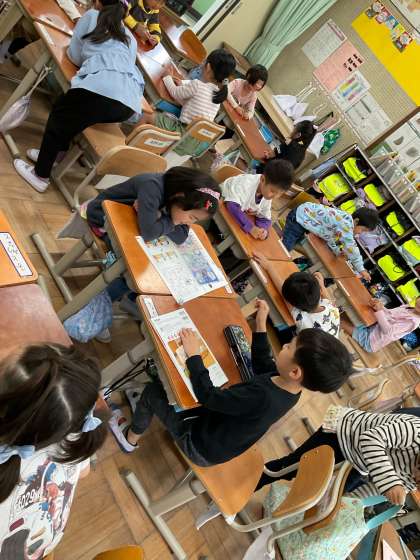 白が4人座れたら赤は2人だねと、遊びながら気づいていました。