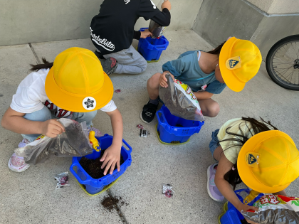 今日はアサガオの種をまきました。