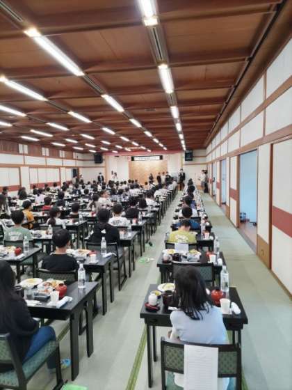 食事会場にて、入館式をしました。