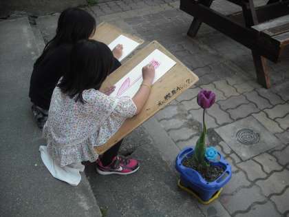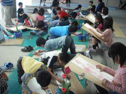 学年で取り組んでいます♪どんなチューリップが仕上がるのかな?お楽しみに☆