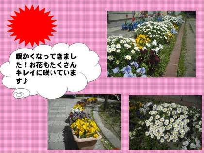 中庭にあるプランターのお花がキレイに顔を出し,花を咲かせています♪