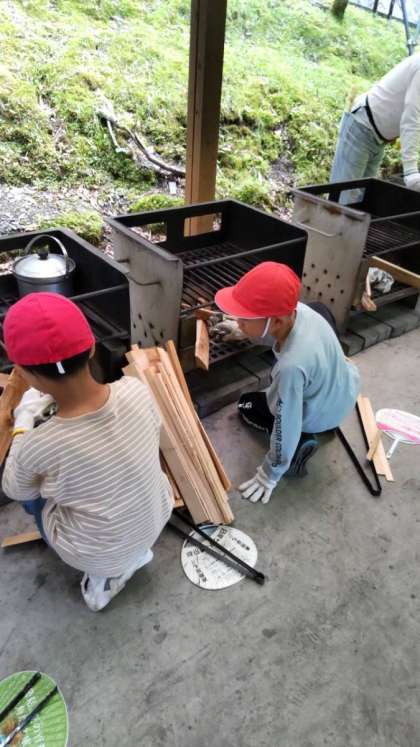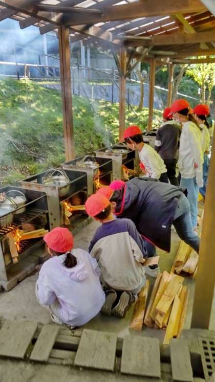 どの班も上手に火が付きました。薪の入れ方を考えて、火力の調節をしています。