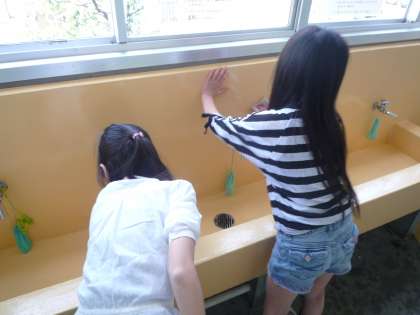 給食の待ち時間を利用して,手洗い場をきれいにみがくピカピカ隊★