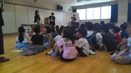 読み聞かせサークル「木いちごの会」のみなさんによる、「ともだちや」作:内田麟太郎)の読み聞かせの様子です。楽しい読み声で子どもたちも物語の世界に浸ることができました。「木いちごの会」の皆様、ありがとうございました。