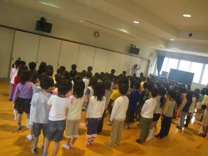 あさっての本番に向けて,学年全体で並び方やセリフの練習をしました。