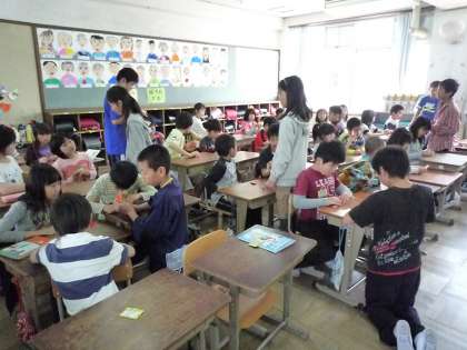 1年生には,縦割り学年のペアで,2〜5年生にはそれぞれ分かれてお願いに行きました。