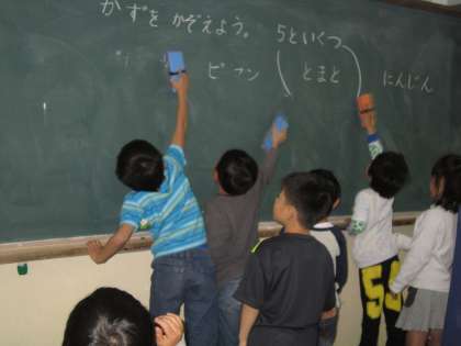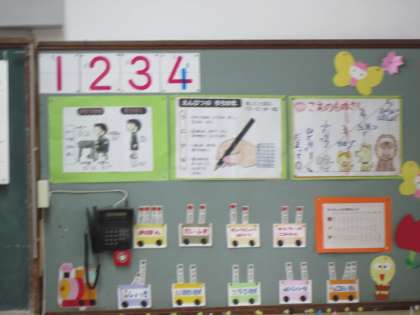 一年生えらい! 掲示物には,習った数字やがんばっている給食当番の表が,