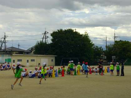運動会に向けてリレーの練習中。仲間を応援する元気な声が運動場に響き渡っていました。力いっぱい走る姿、頑張る仲間を応援する姿、どちらも素敵です。