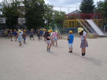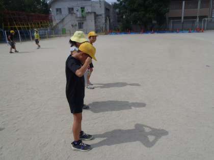 「かげと太陽」の学習がはじまりました。今日は運動場で、かげふみをしました。