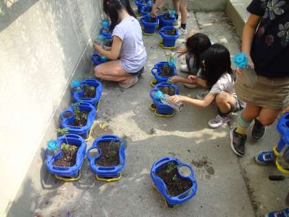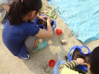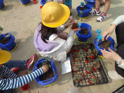 生活科でトマトの苗を植えたよ。球根を抜いて,土をスコップで入れ替えてしっかり