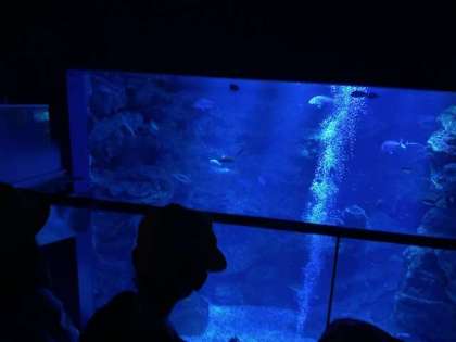 京都水族館で一番大きな水槽の前で