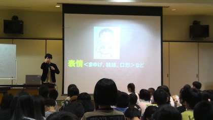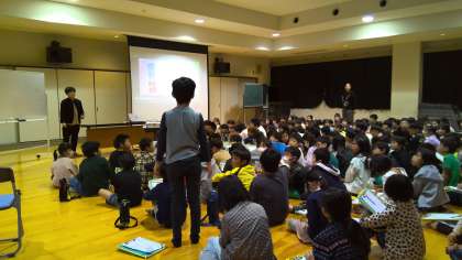 子供たちは真剣に話を聞いていました。インタビューのときには、たくさんの子供たちが手を挙げて、質問していました。どうすればともに支えあっていけるだろうと考えている姿は、素晴らしかったです。インタビューを発表する前に、自分の名前を手話で紹介したのですが、上手に手話で紹介することができました。さすがです!!