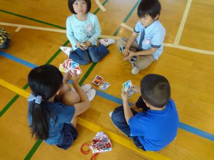 1年生とのグループになり,グループあそびをしました。トランプ・折り紙・読み聞かせ・間違い探し・おはじきといろいろ遊んでいました。