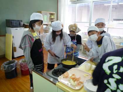 家庭科の調理実習で「いりたまご」と「野菜炒め」を作りました。