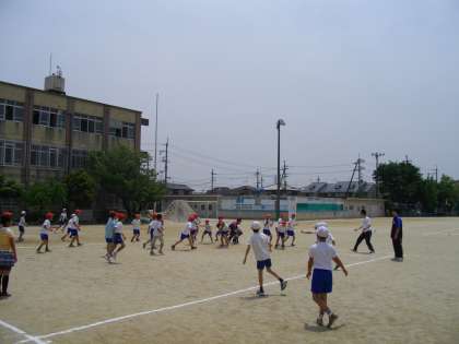 次に対抗ドッジボールをしました。ドッジボールで勝とうと思うと,相手を当てることも大事ですが,ボールをよけることも大事ですね。子どもたちは,体をいっぱい動かして活動を楽しんでいました。