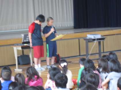 写真は,担当の委員長さんたちが熱心にみんなに話して聞かせているところです。