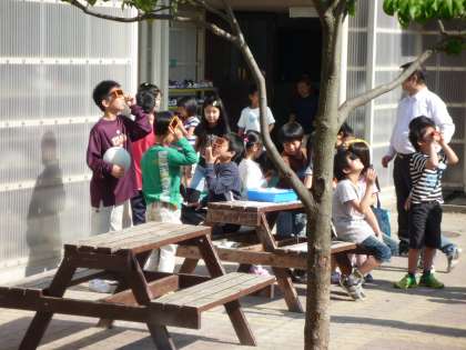 今日は金環日食を見ることが出来ました。お家でも見られたでしょうか?子どもたちは,登校してから欠けている太陽を順番に見て楽しんでいました。
