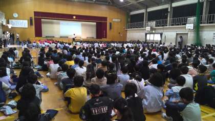 また、20名の教職員が着任し、ずらっと舞台に並ばれたので、子どもたちは思わず「多っ」とざわついていました。