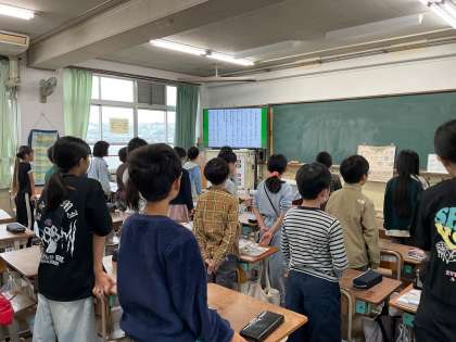 今日の朝の時間は、各クラスで全校合唱の曲を歌う日でした。5年生の子供たちは、金曜日の朝でも元気な声で体を揺らしながら歌っていました。