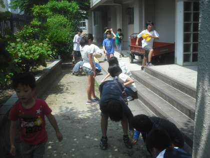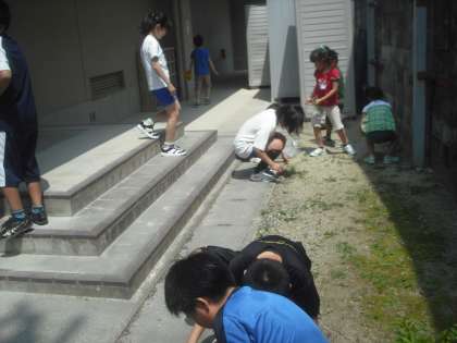 昼休みに1年生,6年生で体育館周りの草ぬきボランティアをしました。最高学年のお兄さん,お姉さんと共に1年生も積極的に参加,協力してくれ,みんなで体育館周りをきれいにしました。