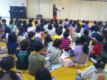 9日(月)と12日(木)に木いちごさんが、ミーティングルームで読聞かせをしてくださいました。学年のみんなが集まっての読聞かせの会。とても楽しい時間を過ごすことができました。