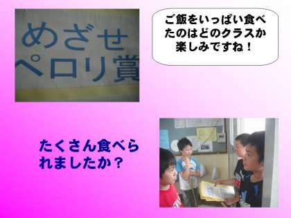 今日は給食のペロリ賞の準備として,給食委員会がペロリの回数をした用紙を各クラスにとりにいきました!どのクラスもペロリ賞をもらえるといいですね♪