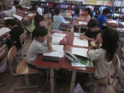 国語科の「まいごのかぎ」で自分の好きな場面を班の友だちに伝え合いました。ノートに書いたことを話した後、友だちと同じように思ったり、ちょっと違ってたと話していました。「まいごのかぎ」は、不思議なことの楽しさと、主人公のりいこの気持ちを考えた学習でした。自分だったらどうするかも話題にあがりました。