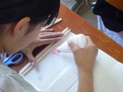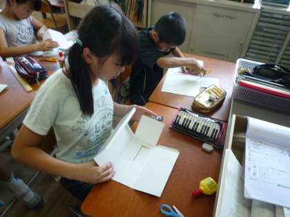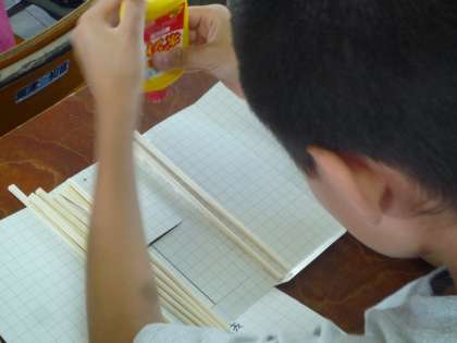 工作用紙に展開図をかき,アニメーションカードを入れるレールを
