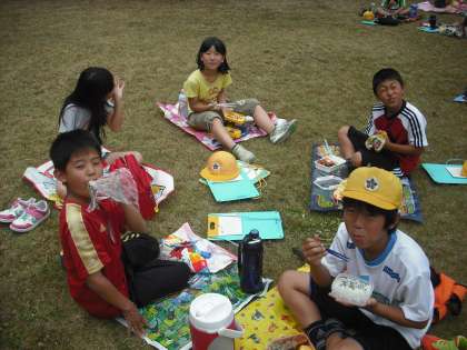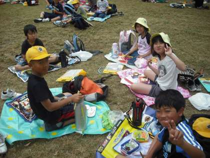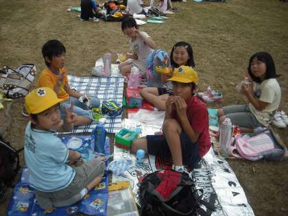 みんなが楽しみにしていたお弁当を,埋立処分地の横大路運動公園でおいしく食べました。みんなお腹が減っていたので、笑顔で完食しました。