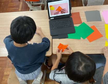折り紙遊びを通して、指先を細かく使う練習をしています。秋の飾りになりそうな折り紙を選んで、折り方を見ながらていねいに折ることができました。どんぐり、かぼちゃ、おばけ、ねこ……次は何を折ろうかな?