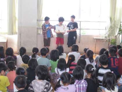 たくさんの子どもたちが楽しみにしていた,あじさい読書週間の読み聞かせが始まりました。第1図書室では,図書委員会の子どもたちが読み聞かせをしてくれています。月曜日は「つばめの ピーちゃん」,火曜日は「かたつむり」。たくさんの子どもたちの前で上手にしてくれました。