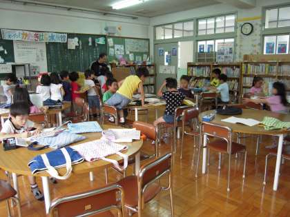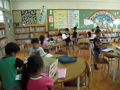 先週に引き続き今週もあじさい読書週間です。毎日,朝学習の時間に自分の好きな本を読んでいます。そのため,月曜日には,第二図書室に行って,今週読む本を借りているのですが,人気のある本は,だれかが返すとすぐに次の人が借りています。1年生は,図書室に行けるこの時間をとても楽しみにしています。本が好きな子がたくさんいるというのは,とてもすてきなことですね。